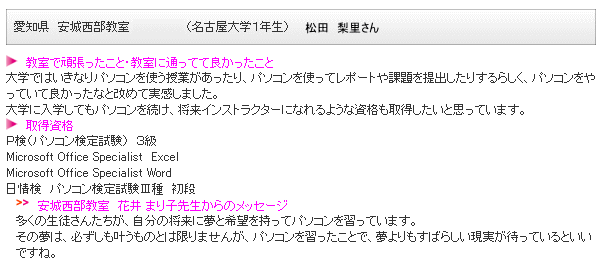 ■少々のんびり屋の先生ですが、一度教室をのぞいてみてくださいね