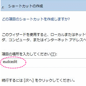 項目の場所に「eudcedit」と入力し、[次へ] をクリックします。